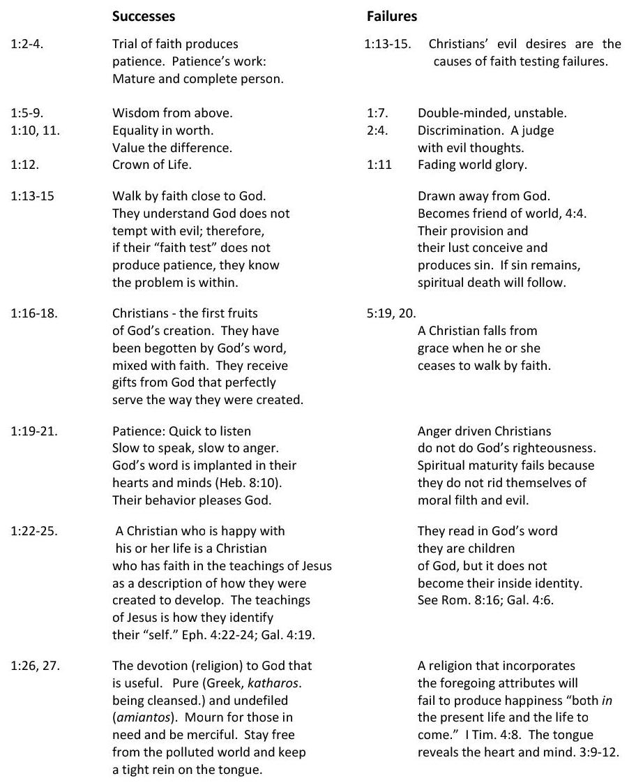2. A Christian’s faith will be tested in order to develop patience; therefore, strong character. (1:2-4). Faith in its “raw form” (that which comes from hearing God’s word) is not all that God desires. He wants our faith to be perfected, just as Abraham’s faith was “made perfect” by God’s testing. (See 2:22 in our text).